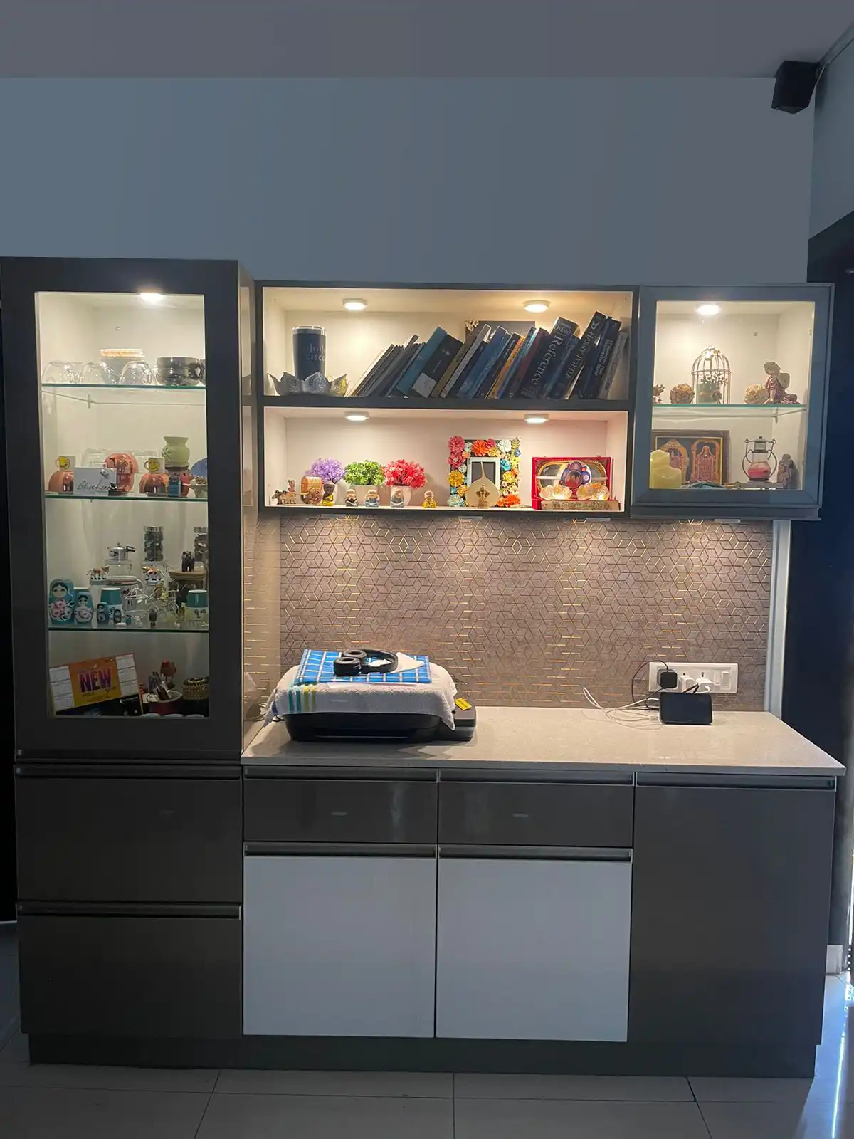 A modular crockery unit serves as an elegant storage solution for your fine china, glassware, and collectibles. It not only keeps your precious items organized but also adds a touch of sophistication to your living space. Moreover, it offers a designated area to showcase your unique taste and personality.
